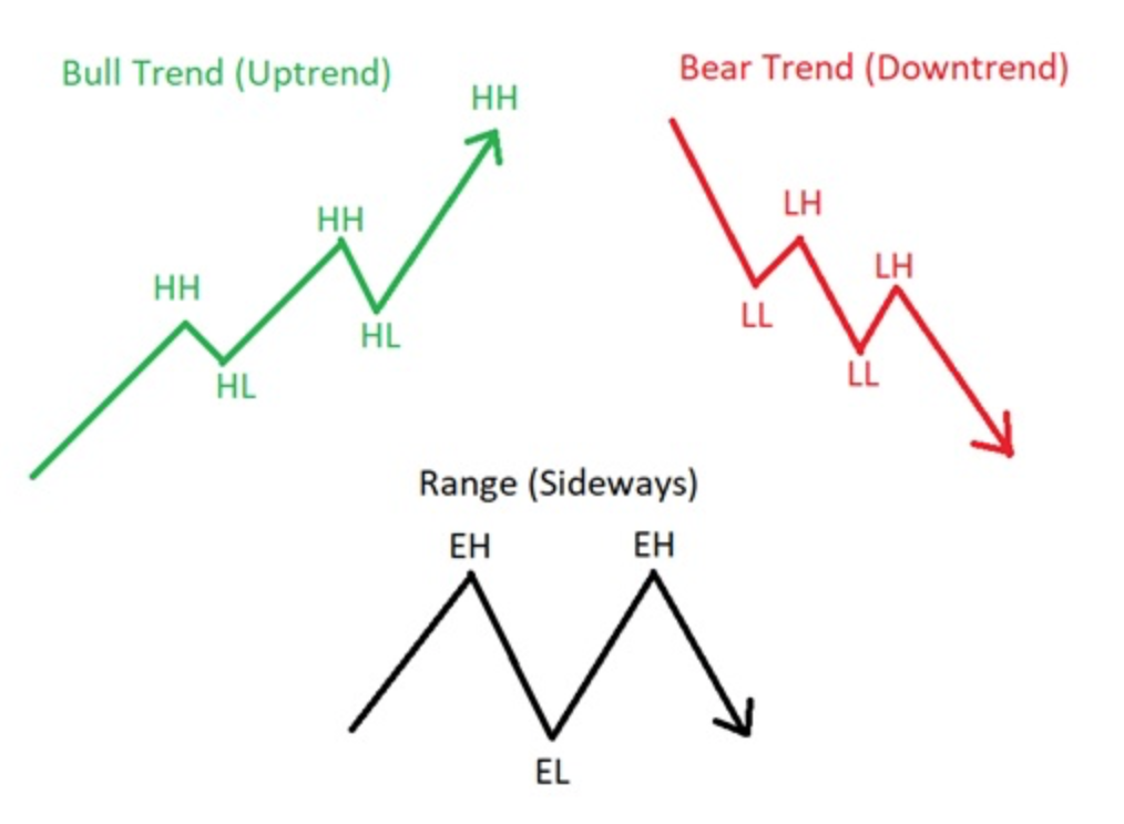 Market structure is a trend following tool that traders read and follow based on how an asset moves. From bullish moves, to bearish and in between with ranges.